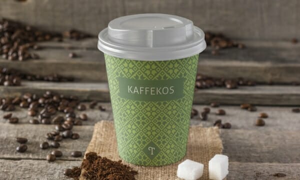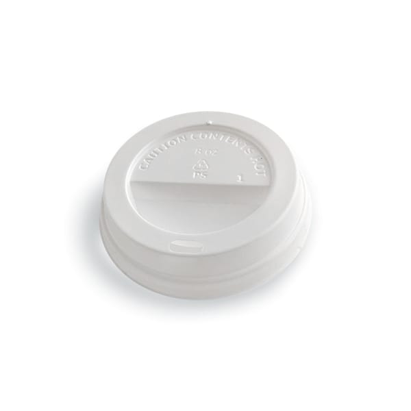 Flatt kaffelokk med drikkehull som passer til våre pappkopper med logo i 8 oz.